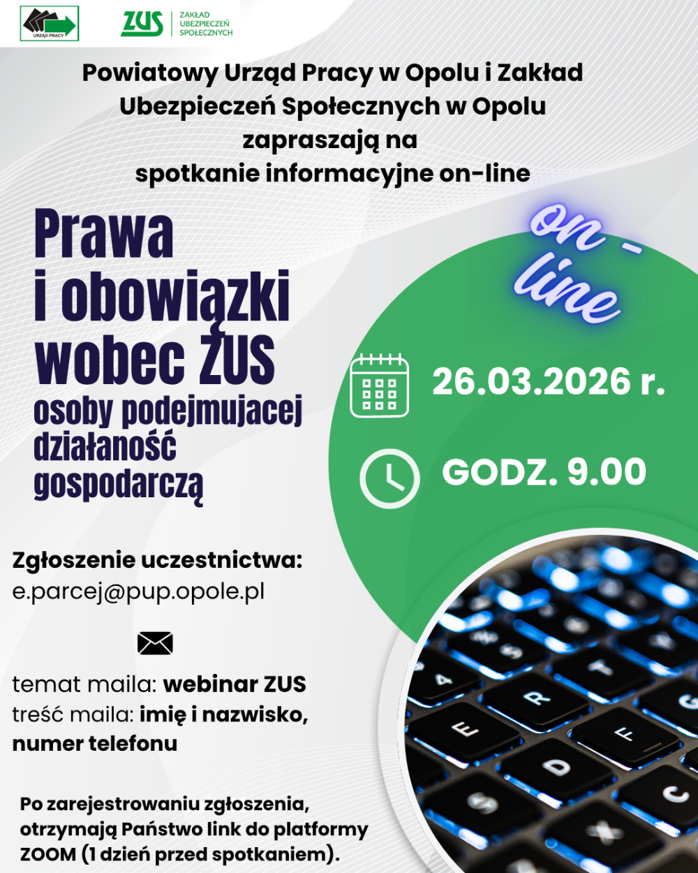 Spotkanie informacyjne on-line z pracownikiem ZUS - Powiatowy Urząd Pracy w Opolu