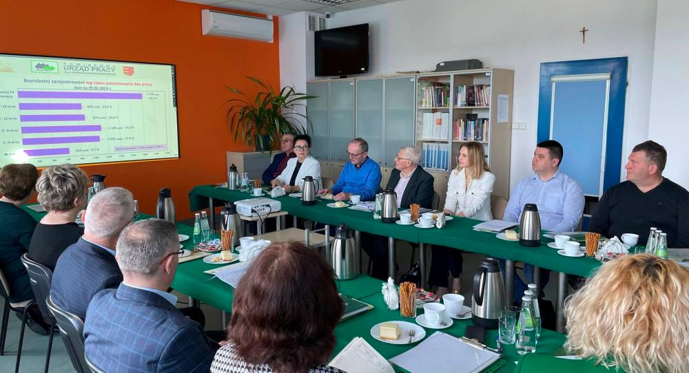 Podczas posiedzenia omówiono bieżącą sytuację na rynku pracy Powiatu Nowosądeckiego i przedstawiono roczną „Informację o realizacji zadań przez Powiatowy Urząd Pracy dla Powiatu Nowosądeckiego w 2023 r.", obydwa tematy referowała P. Małgorzata Wnęk – p.o. Dyrektora Powiatowego Urzędu Pracy dla Powiatu Nowosądeckiego.
